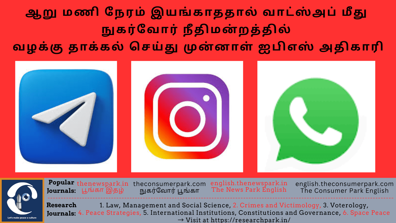ஆறு மணி நேரம் இயங்காததால் வாட்ஸ்அப் மீது நுகர்வோர் நீதிமன்றத்தில் வழக்கு தாக்கல் செய்து முன்னாள் ஐபிஎஸ் அதிகாரி
