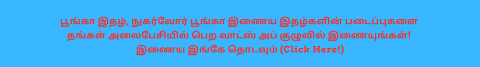 இணைய பத்திரிகைகளில் கௌரவ தூதர், இயக்குனர், புரவலர், விரிவாக்க அலுவலர், ஆசிரியர் – ஆசிரியர் குழு உறுப்பினர், தன்னார்வலர் பொறுப்புகளில் இணைய விருப்பமா? இங்கே தொடவும் (Click Here!)