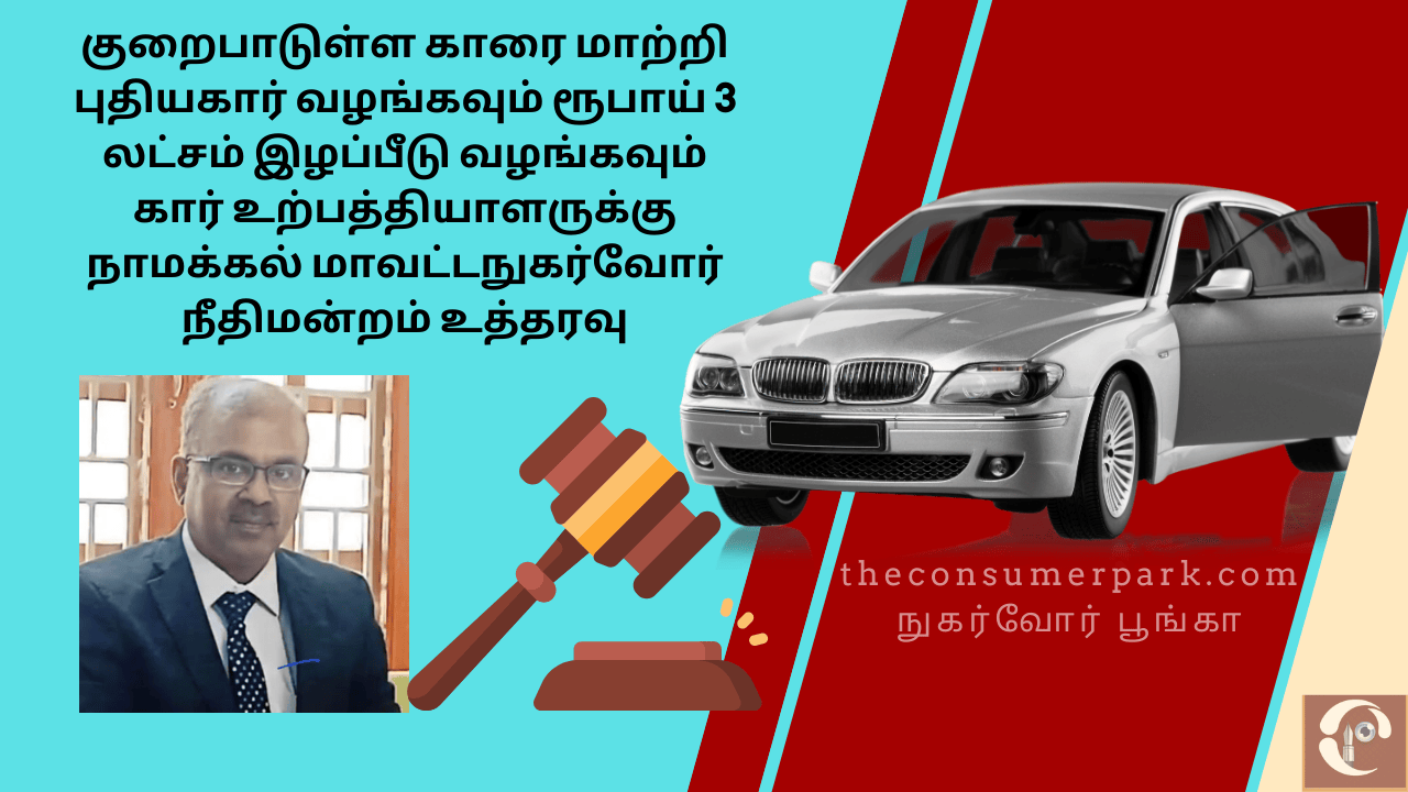 குறைபாடுள்ள காரை மாற்றி புதிய கார் வழங்கவும் ரூபாய் 3 லட்சம் இழப்பீடு வழங்கவும் கார் உற்பத்தியாளருக்கு நாமக்கல் மாவட்ட நுகர்வோர் நீதிமன்றம் உத்தரவு