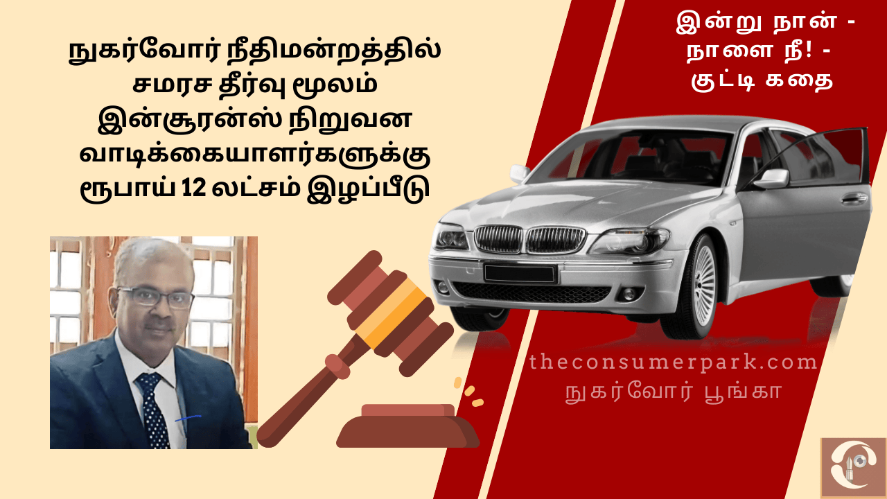 நுகர்வோர் நீதிமன்றத்தில் சமரச தீர்வு மூலம் இன்சூரன்ஸ் நிறுவன வாடிக்கையாளர்களுக்கு ரூபாய் 12 லட்சம் இழப்பீடு