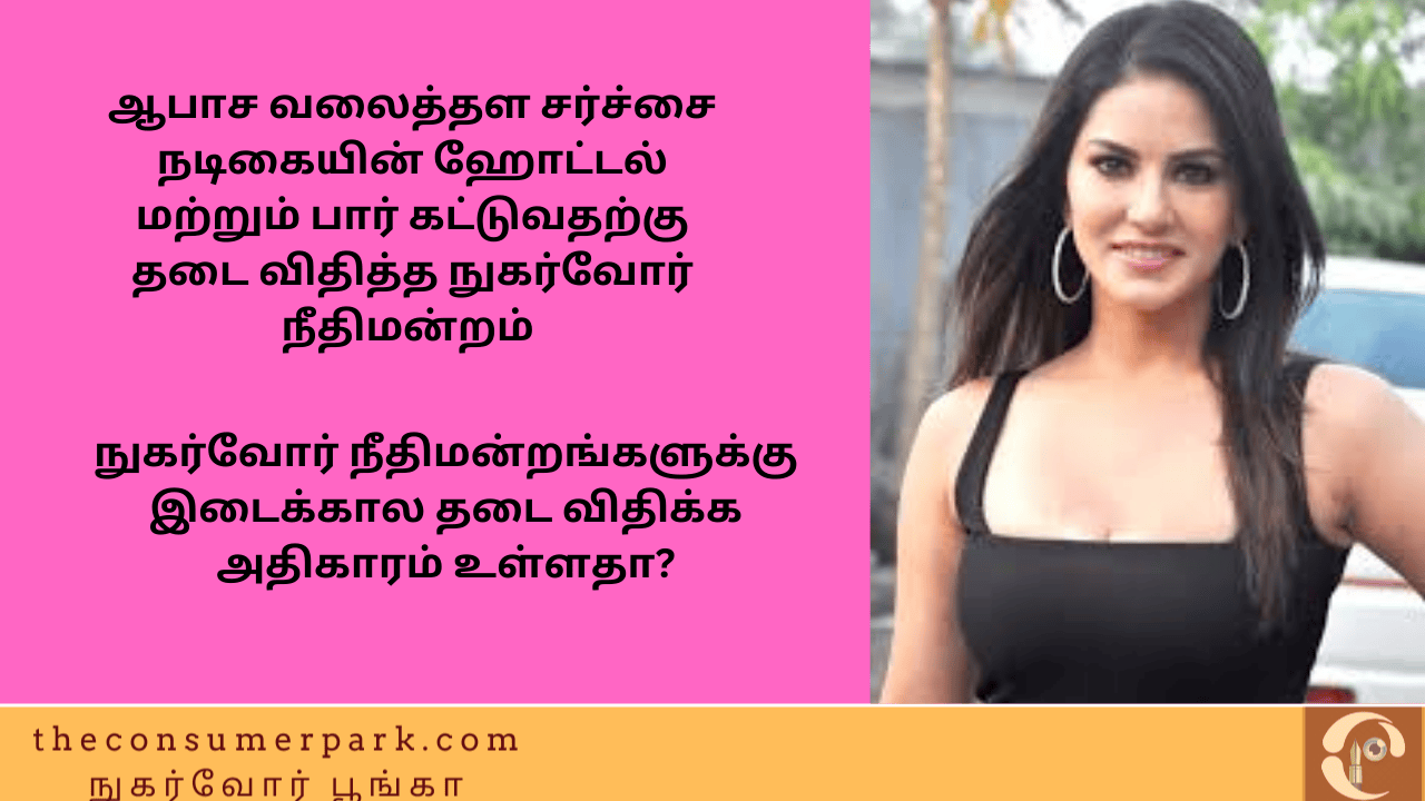 ஆபாச வலைத்தள சர்ச்சை நடிகையின் ஹோட்டல் மற்றும் பார் கட்டுவதற்கு தடை விதித்த நுகர்வோர் நீதிமன்றம்