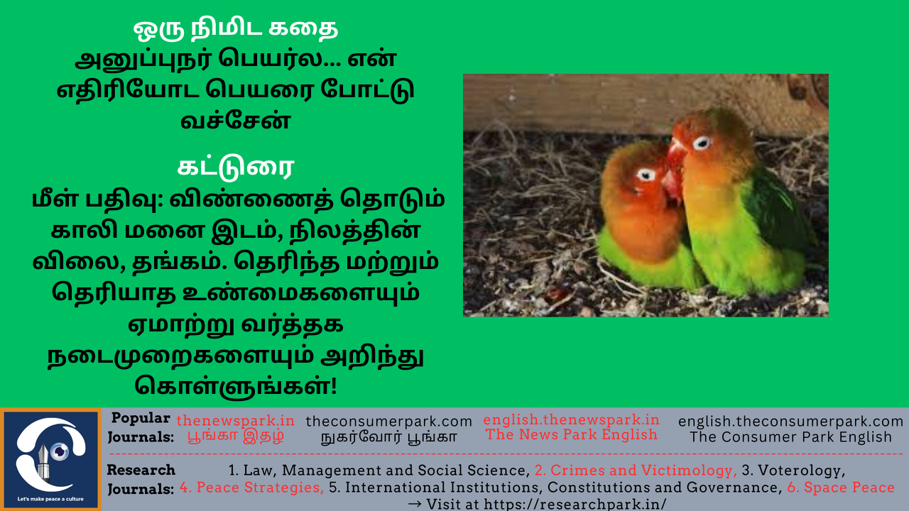அனுப்புநர் பெயர்ல… என் எதிரியோட பெயரை போட்டு வச்சேன் + மீள் பதிவு: விண்ணைத் தொடும் காலி மனை இடம், நிலத்தின் விலை, தங்கம். தெரிந்த மற்றும் தெரியாத உண்மைகளையும் ஏமாற்று வர்த்தக   நடைமுறைகளையும் அறிந்து கொள்ளுங்கள்!