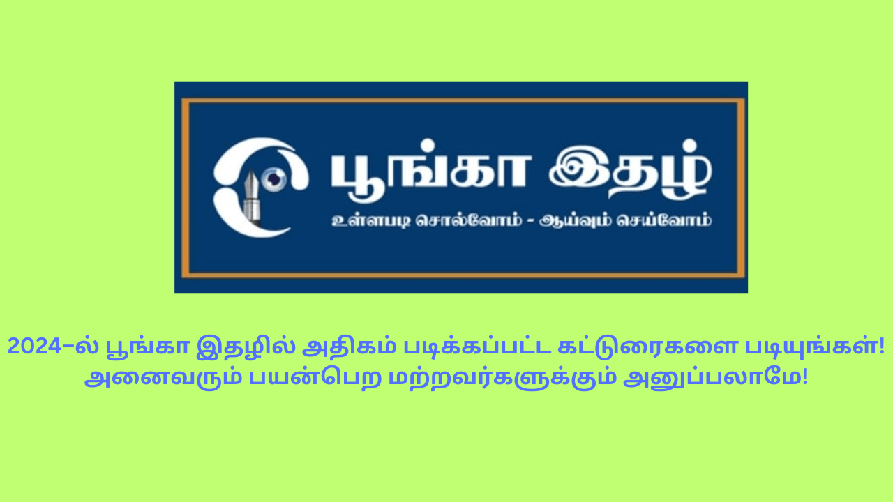 2024–ல் பூங்கா இதழில் அதிகம் படிக்கப்பட்ட கட்டுரைகளை படியுங்கள்! அனைவரும் பயன்பெற மற்றவர்களுக்கும் அனுப்பலாமே!