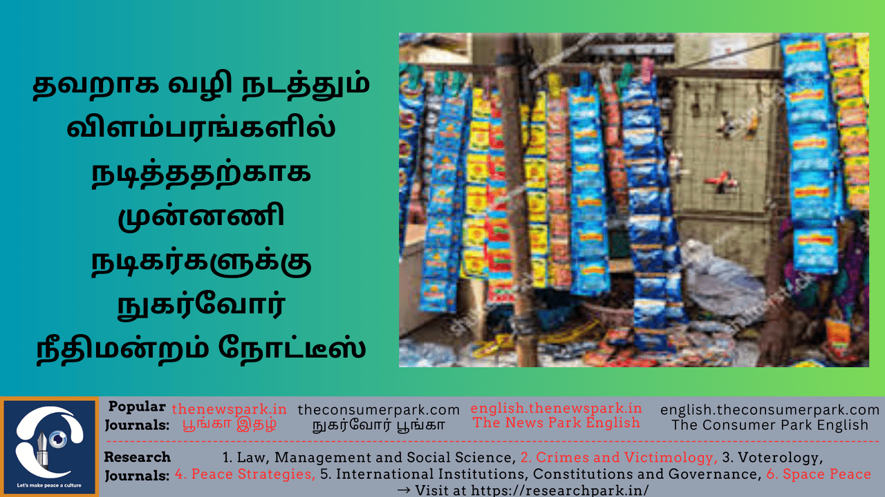 நுகர்வோர் பூங்கா (The Consumer Park) கருத்து: பொருட்களையும் சேவைகளையும் விற்பனை செய்து பணம் சம்பாதிப்பதற்காக பொதுவெளியில் பல்வேறு வகையில் மக்களையும் தவறாக வழிநடத்தும் விளம்பரங்கள் வெளியாகின்றன. இது குறித்து நுகர்வோர் நீதிமன்றத்தில் வழக்கு தாக்கல் செய்ய முடியும் என்பதை இந்த செய்தி எடுத்துக்காட்டுகிறது.
