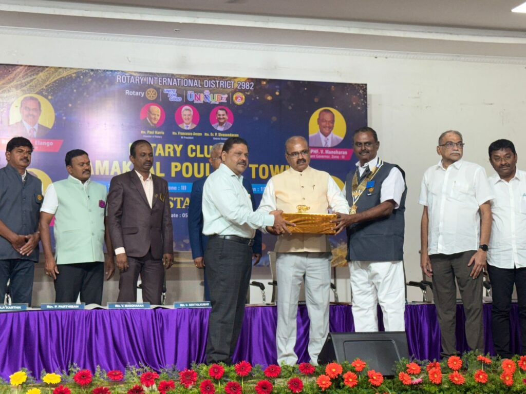நாமக்கல் கோழிப்பண்ணை நகர ரோட்டரி சங்கத்தின் (Rotary Club of Namakkal Poultry Town) புதிய நிர்வாகிகள் பதவி ஏற்பு விழா நேற்று நடைபெற்றது. இந்நிகழ்வில் தலைவராக கோஸ்டல் என். இளங்கோ, செயலாளராக பி. பார்த்திபன், பொருளாளராக ஆர்.பி. கார்த்திக் ஆகியோர் பதவியேற்றனர். தமிழ்நாடு லோக் ஆயுக்தா உறுப்பினர் டாக்டர் வீ. ராமராஜ், ரோட்டரி சங்கத்தில் மாவட்ட ஆளுநராக அடுத்த ஆண்டுக்கு தேர்வாகியுள்ள சி. செந்தில்குமார் ஆகியோர் சிறப்பு விருந்தினர்களாக நிகழ்ச்சியில் கலந்து கொண்டனர். ரோட்டரி உள்ளிட்ட தன்னார்வ அமைப்புகள் மக்களிடையே ஊழல் எதிர்ப்பு விழிப்புணர்வை ஏற்படுத்த வேண்டும் என்று இந்த நிகழ்ச்சியில் பேசிய டாக்டர் வீ. ராமராஜ் வலியுறுத்தினார். மேலும் அவர் பேசியதாவது.
