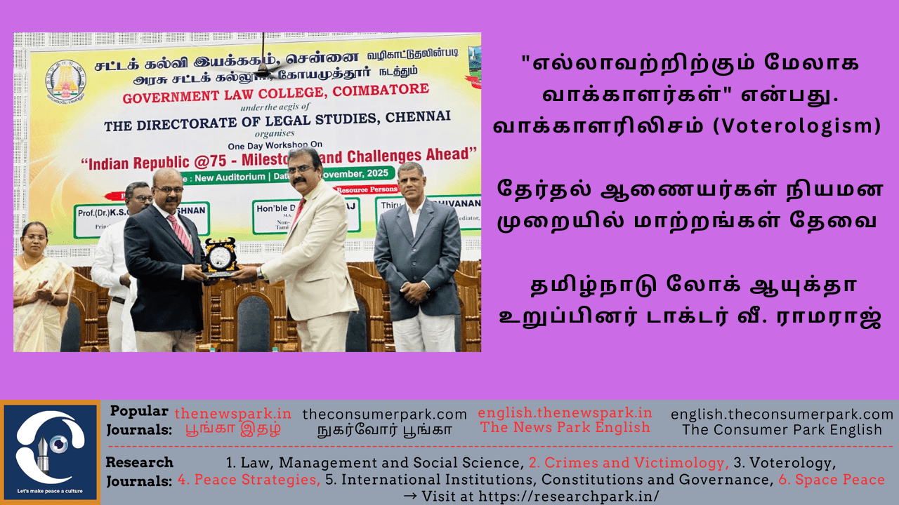“எல்லாவற்றிற்கும் மேலாக வாக்காளர்கள்” என்பது வாக்காளரிலிசம் (Voterologism).  தேர்தல் ஆணையர்கள் நியமன முறையில் மாற்றங்கள் தேவை – தமிழ்நாடு லோக் ஆயுக்தா உறுப்பினர் டாக்டர் வீ. ராமராஜ்
